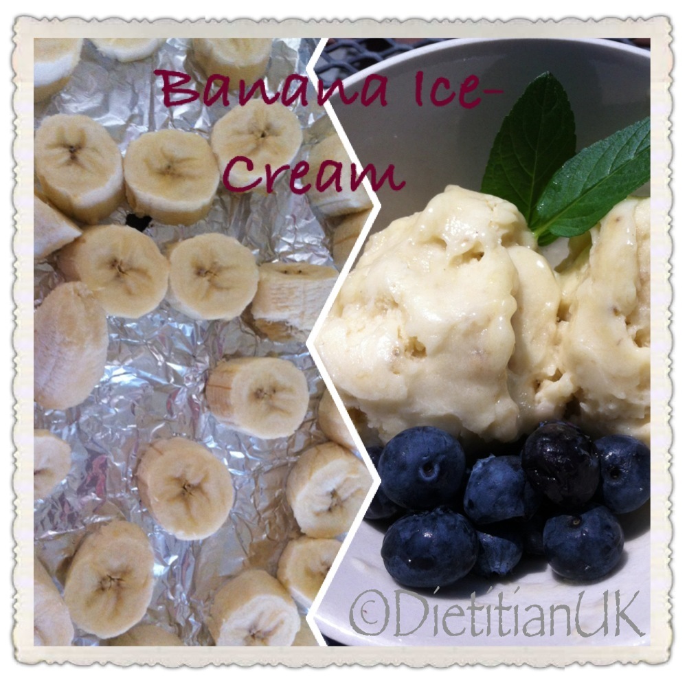 This weekend it’s been super hot, so myself and the toddler have been chilling in the garden, trying to keep cool. Ice-cream is just one of those foods that hits the spot in weather like this. Having heard about frozen bananas making good ice-cream I decided to give it a go. I was very pleasantly suprised.